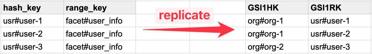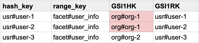 You created a GSI to be able to query all the users' information by a single organization ID.