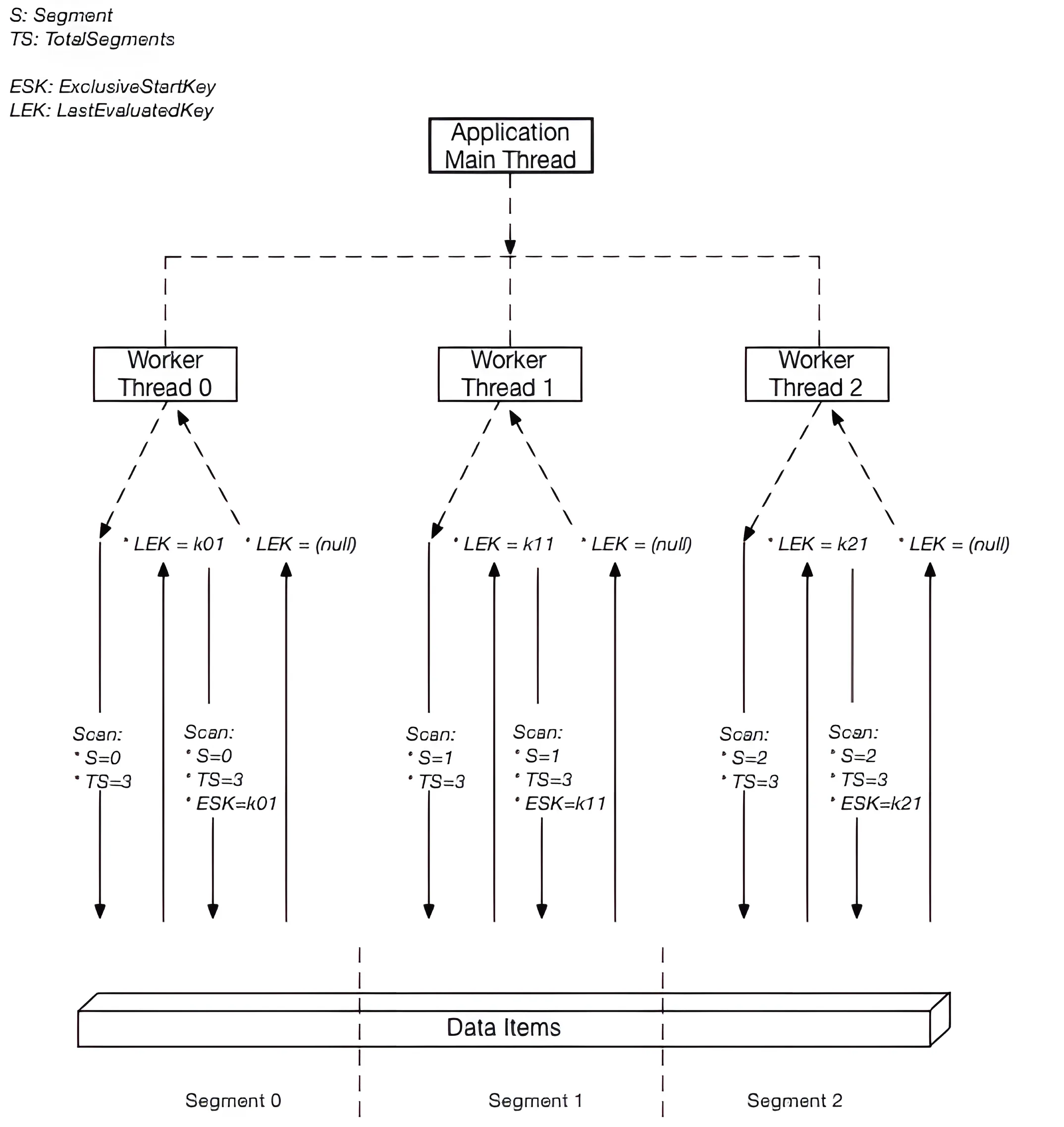 By doing so, your table will be virtually divided into many segments, and then you paginate through the results of each segment, just like you did with the regular Scan API call.