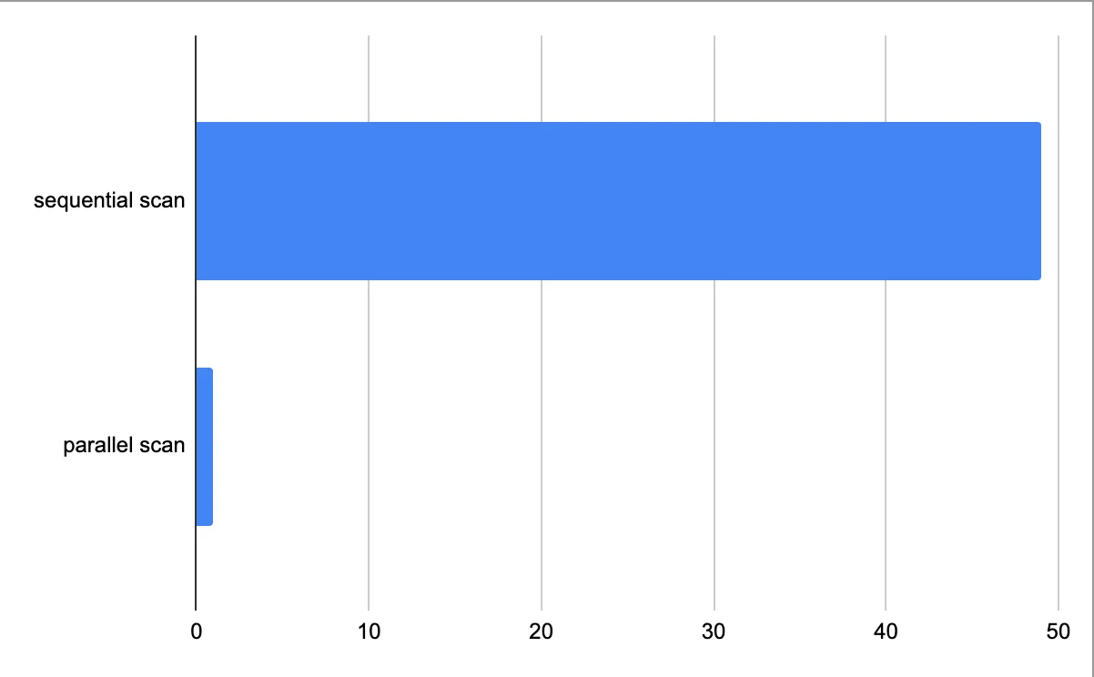 So in my example, by running the script on the t4g.small EC2 instance, I was able to scan a 23 GB table in just 1 minute! While the sequential scan took 49 minutes. 50x faster! Not bad!