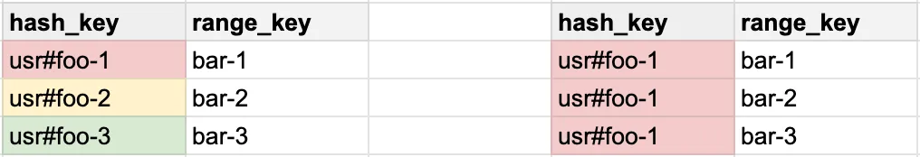 So as a rule of thumb, don't attempt to set a concurrency higher than a number of unique hash key values in a table. The illustration below shows a good (left) and a bad (right) hash key design.