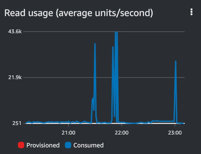 While running the scan, our table peaked at ~43,600 Read Capacity Units consumed.